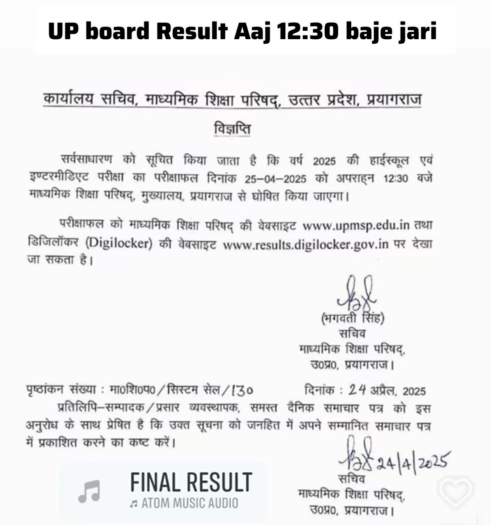 UP Board result 2025 10th और 12th का रिजल्ट घोषित होने की दिन और समय, तिथि जारी, छात्रों के लिए बड़ी खुश ख़बरी।